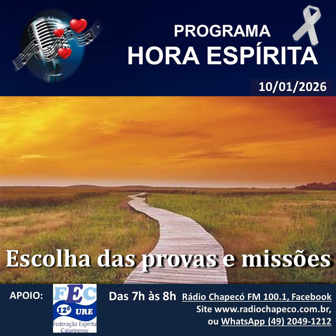 A 13ª União Regional Espírita promove o Seminário “O EXPOSITOR ESPÍRITA” no dia 17/1/2026 das 13h30 às 17h30. FACILITADORA: Maria Helena Marcon, da Federação Espírita do […]