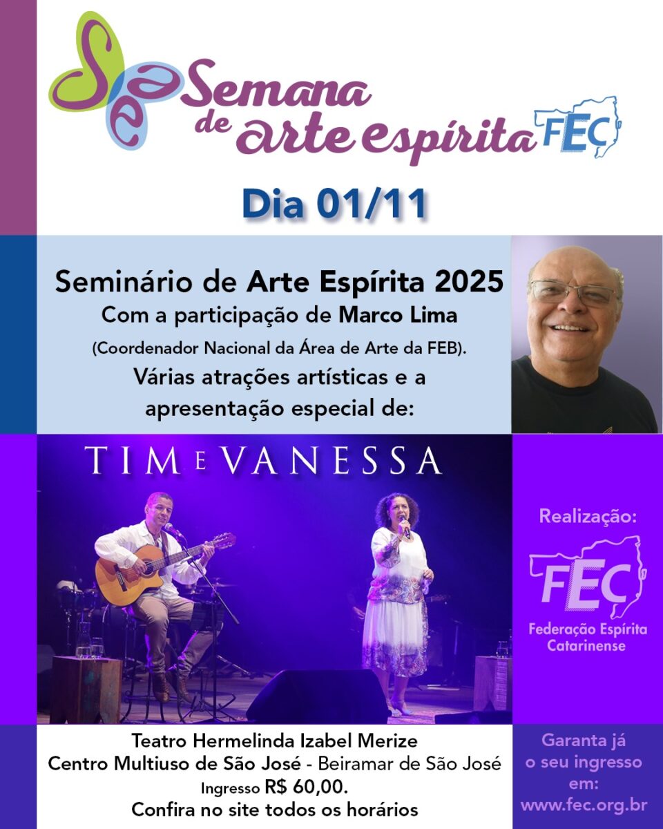 A Federação Espírita Catarinense promove no próximo dia 1º de novembro, o Seminário Estadual de Arte Espírita, no Teatro Hermelinda Izabel Merize, do Centro Multiuso de […]
