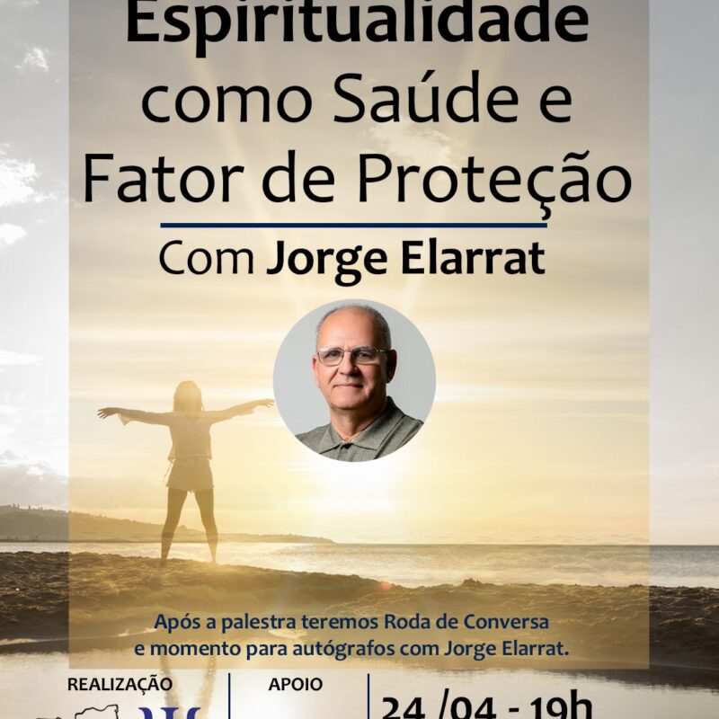 14 de abril de 2026A Federação Espírita Catarinense em Parceria com o Curso de Psicologia da Universidade do Vale do Itajaí, promovem a Palestra Espiritualidade como Saúde e fator de Proteção com Jorge Elarrat no dia 24.04.2026 as 19:00 no Teatro Adelaide Konder no Campus Itajaí.